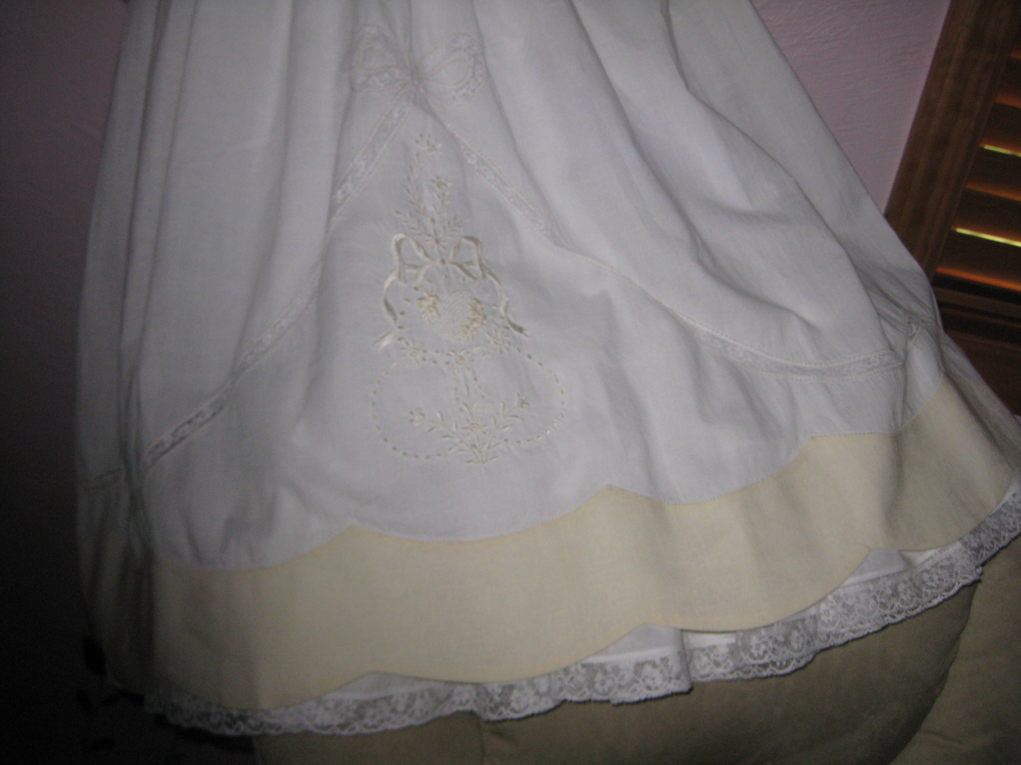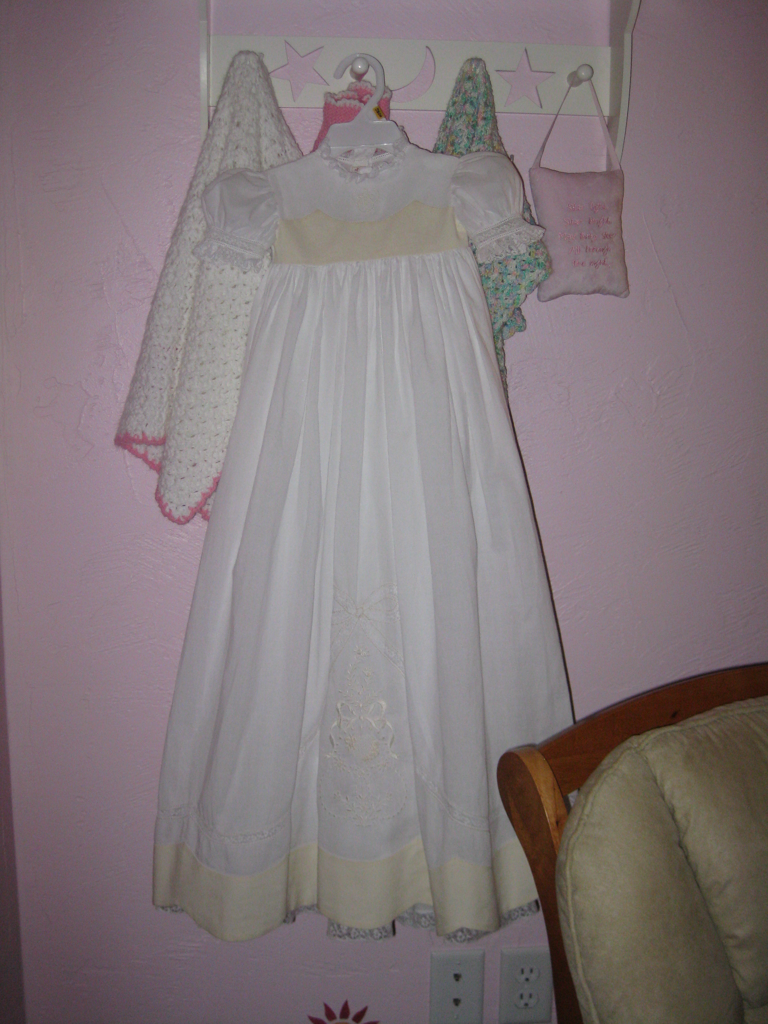 French Hand Sewing and Heirloom Sewing refer to the delicate stitching techniques of yesteryear where fine laces, entredeux, and high quality fabrics were combined to create beautiful clothing.  Martha Pullen has brought these intricate hand stitching techniques to the sewing machine with breathtaking results.  The wonderful sewing machines available today, coupled with fabulous feet and stitches, make heirloom machine sewing very exciting.  This christening gown is the one I made for my darling little granddaughter.  She looked like an angel in it.